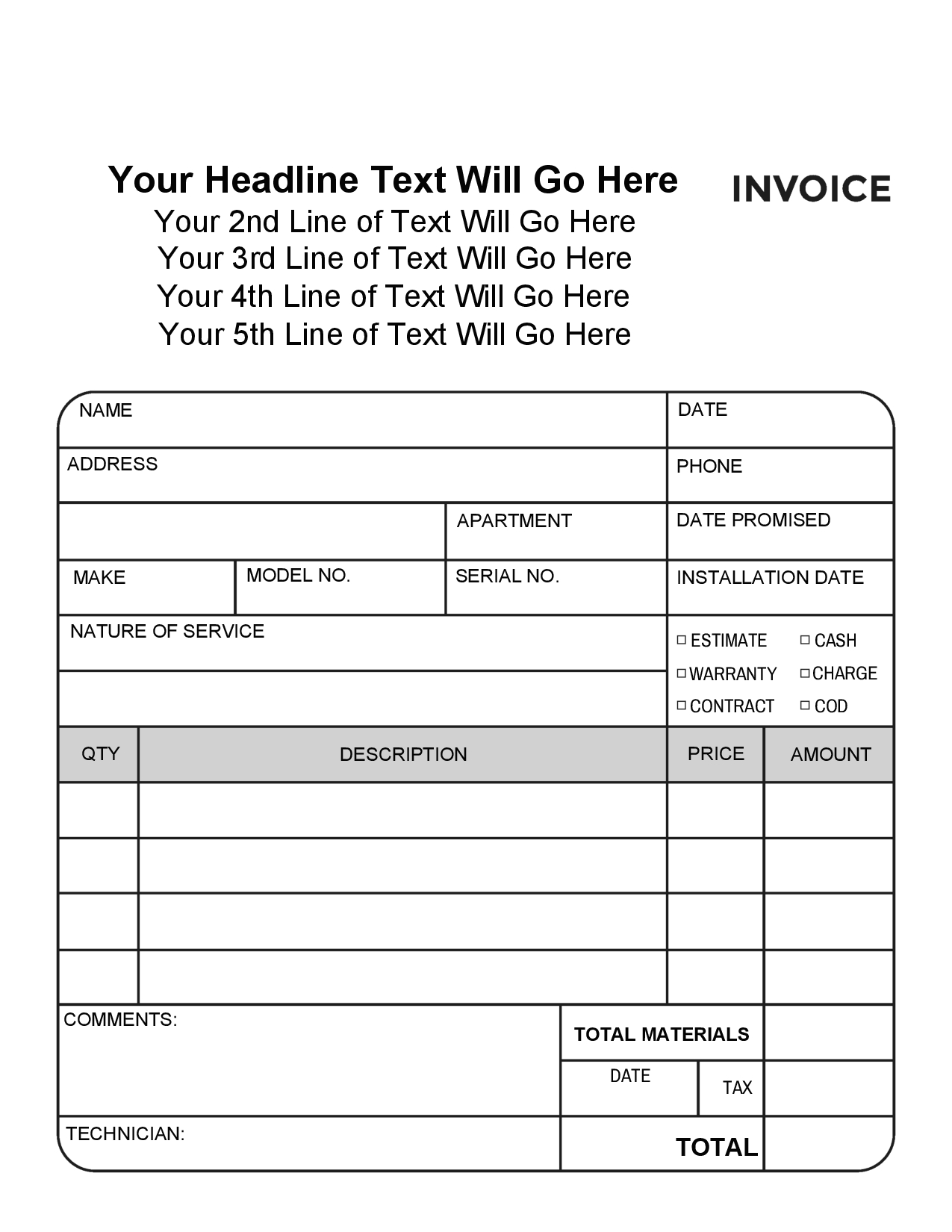 Select a Template (Carbonless Notepads - 5 Sizes)
