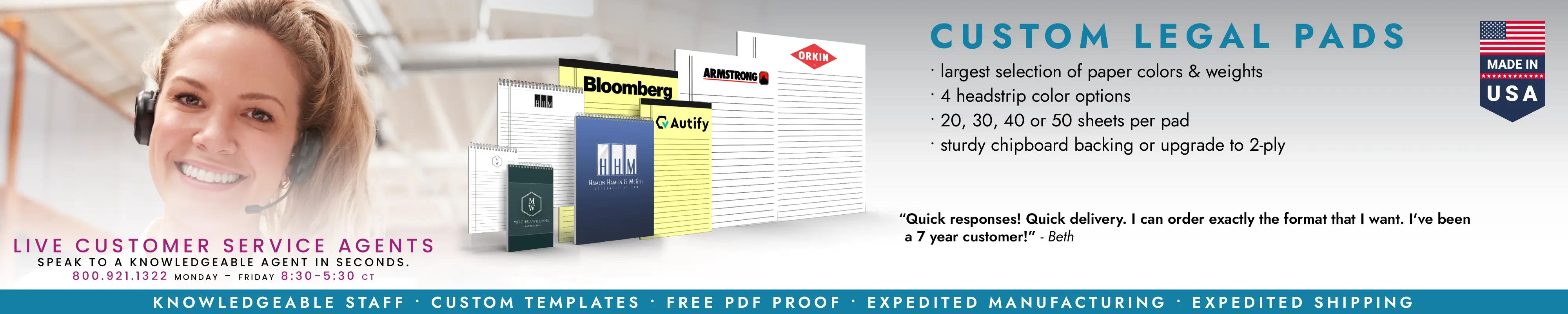- Guaranteed Lowest Price: As the manufacturer, we cut out the middleman. We guarantee the best price among all custom legal pad suppliers.
