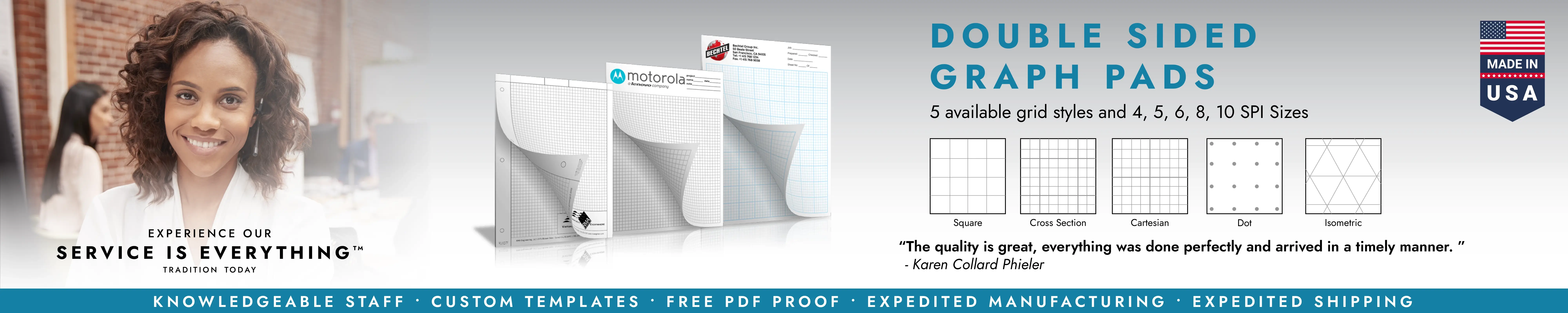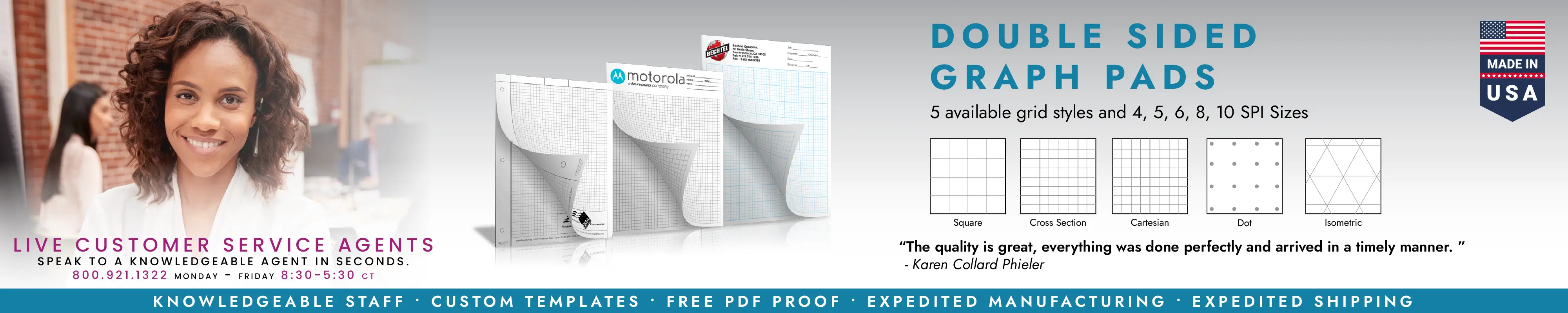 The Verdict: Compare Personalized Paper Manufacturing Group’s superior quality to any online vendor. When you are looking for the best 8.5” x 11.5” custom double-sided graph paper pad, PrintPPS.com is the clear leader.