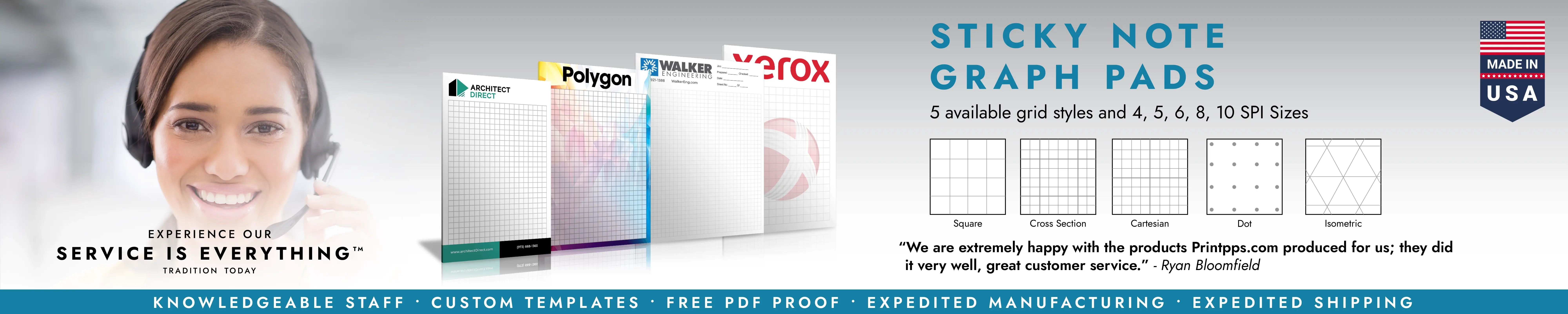 When you are marketing yourself to a customer, you want to impress them with superior quality. All of our personalized graph paper sticky notes are printed on a digital press; therefore, you get full color printing where the colors are bright and vibrant and with our graph paper sticky notes full color ink is provided at no additional cost. You can select to have your 4 or 5 square per inch graph paper. You can even add a bleed or watermark.